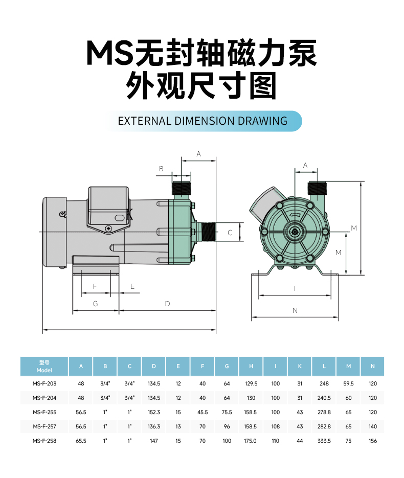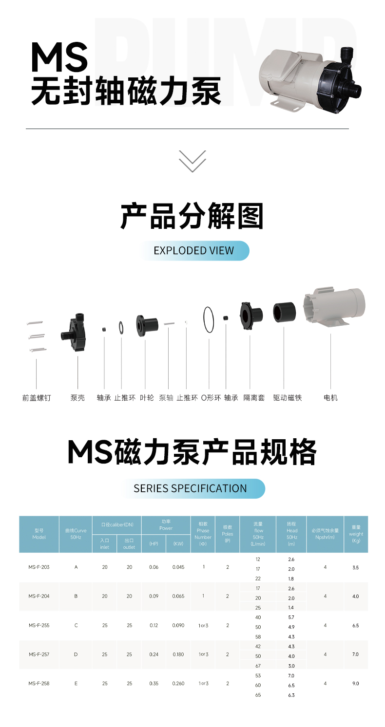 全新第三代耐酸堿磁力泵 寶MS系列耐酸堿磁力泵特殊用料,高溫介質(zhì)輸送,無軸封、無泄漏、輸送液體無氣泡。